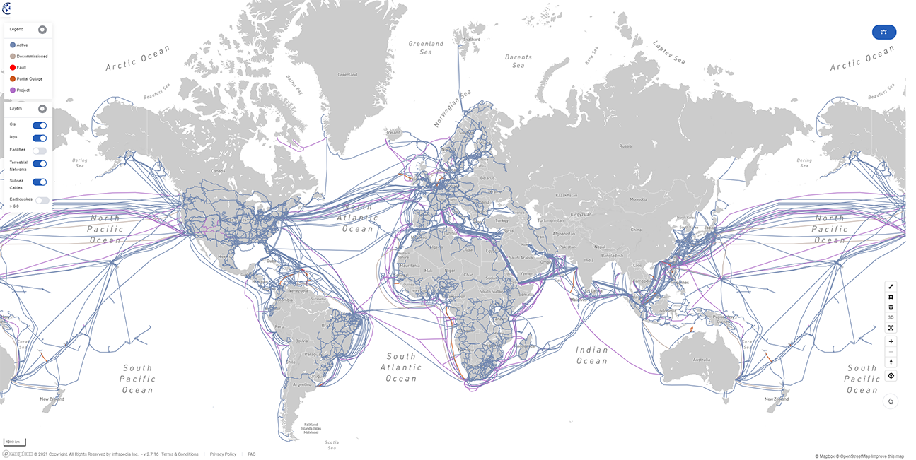 In 2020 there were 59 self-reported cable operators with a total planned capacity for 2022 of 633.3 Tbps.1