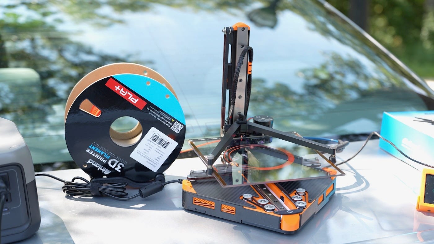 First we have Positron. In July of 2021 youtuber kralyn3d showed of his interpretation of 3D printer he called Positron. It has normal xy kinematics but the z axis is inverted. It prints upside down. And is so small it can fit into filament box.